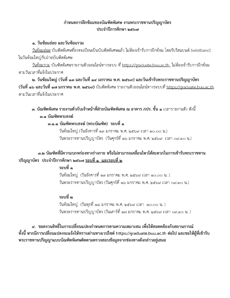 กำหนดการฝึกซ้อมของบัณฑิตพิเศษ งานพระราชทานปริญญาบัตรประจำปีการศึกษา 2567 Posted on November 7, 2025November 7, 2025 by admin กำหนดการฝึกซ้อมของบัณฑิตพิเศษ ดาวโหลดไฟล์ Post Views: 5,808